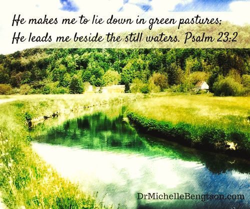 Psalm 23:2 "He makes me lie down in green pastures, he leads me beside quiet waters"