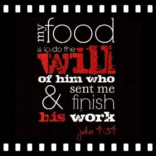 4:34 “My food,” said Jesus, “is to do the will of him who sent me and to finish his work.”