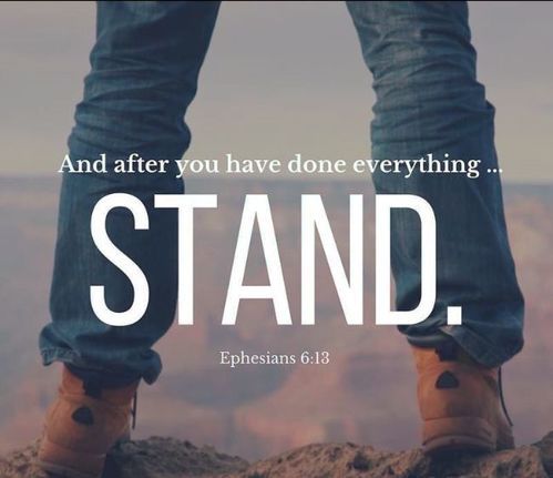 Ephesians 6:13 "Therefore take up the whole armor of God, that you may be able to withstand in the evil day, and having done all, to stand firm."