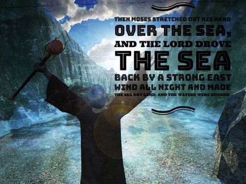 Exodus 14:21,22 Then Moses stretched out his hand over the sea, and the LORD drove the sea back by a strong east wind all night and made the sea dry land, and the waters were divided. And the people of Israel went into the midst of the sea on dry ground, the waters being a wall to them on their right hand and on their left. (ESV)