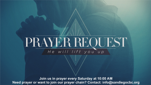 Join us for our church-wide, in person, prayer time on Saturday at 10:00 a.m. in room 900, or Sunday after service in room 500 at the church. For more information, please contact the office.
